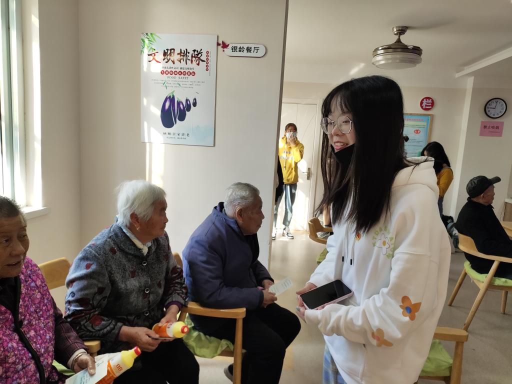 本科生党支部11名党员来到江苏省南京市栖霞区五福家园社区敬老院,开展“初心故事会”爱心志愿活动,为老人带去欢声笑语,并聆听他们的心声。