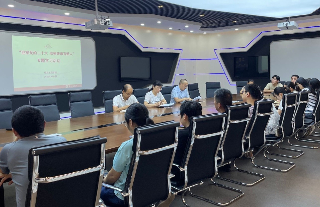在德业楼211会议室开展线上线下“迎接党的二十大,培根铸魂育新人”专题学习活动,学院院领导、全体辅导员、党支部书记、党外人士和教师代表参加了专题学习活动。活动由院党委副书记、纪检委员袁军主持。