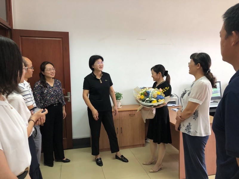 2022年9月8日下午,校党委常委、副校长邱伟芬教授来到哔咔漫画 ,代表校党委校行政慰问学院教学科研办主任张水红老师,感谢她二十多年在教务秘书岗位上所付出的辛勤努力,并向她送去教师节和中秋节的祝福和问候。国际合作与交流处杨智华副处长(主持工作)、校人事处胡倩老师陪同参加了慰问。