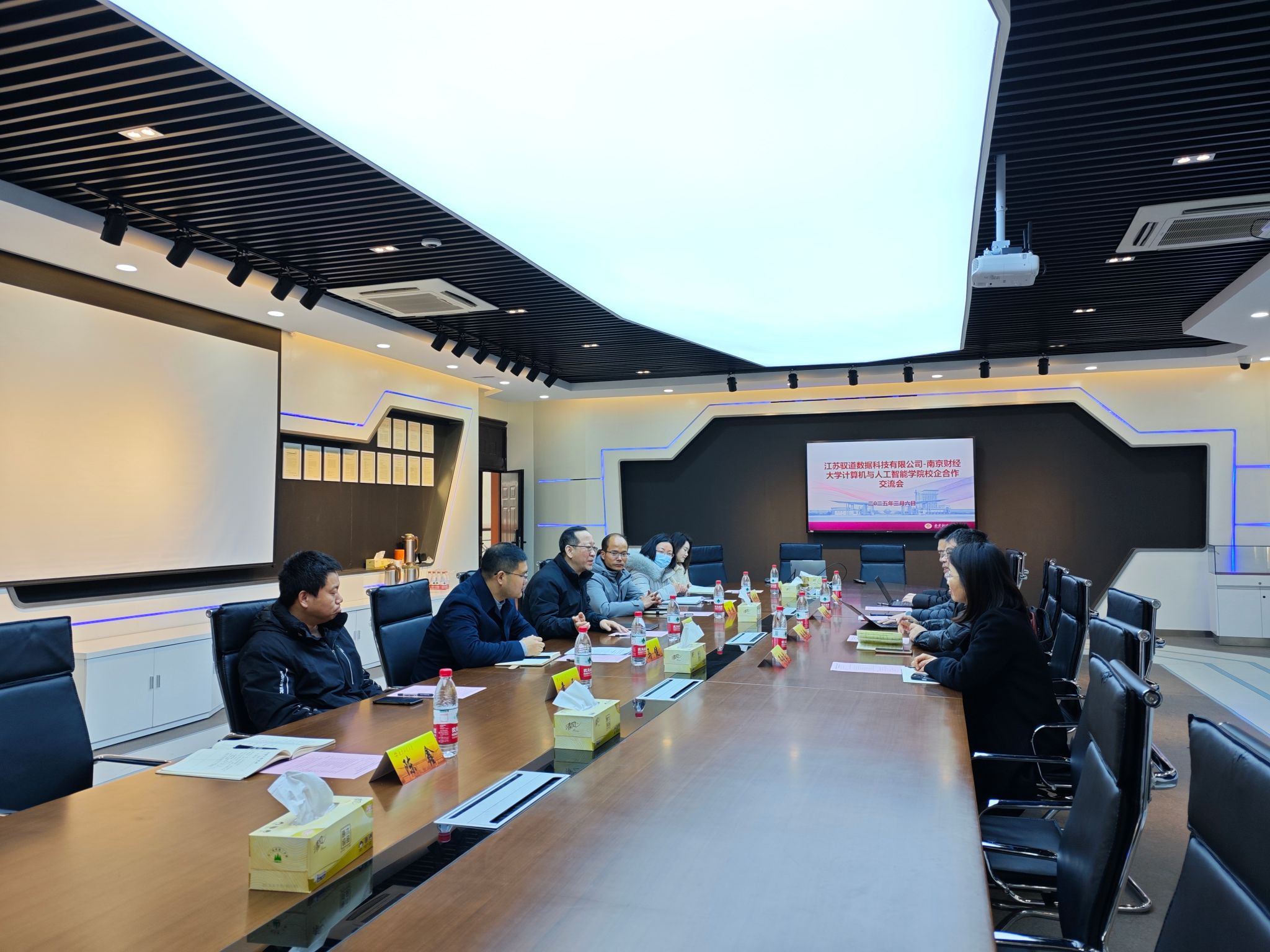 黄健院长对江苏驭道数据科技公司(以下简称驭道数据)及赵元岭副部长的到访表示热烈欢迎,详细介绍了学院在学科建设、人才培养、科学研究以及国家级实验室平台等方面的优势。黄健院长表示,学院愿与驭道数据及南京生态科技岛经济开发区管委会携手,共同搭建校企合作平台,通过项目合作、联合研发、实习实训等方式,实现资源共享、优势互补,共同推动技术创新与产业升级。