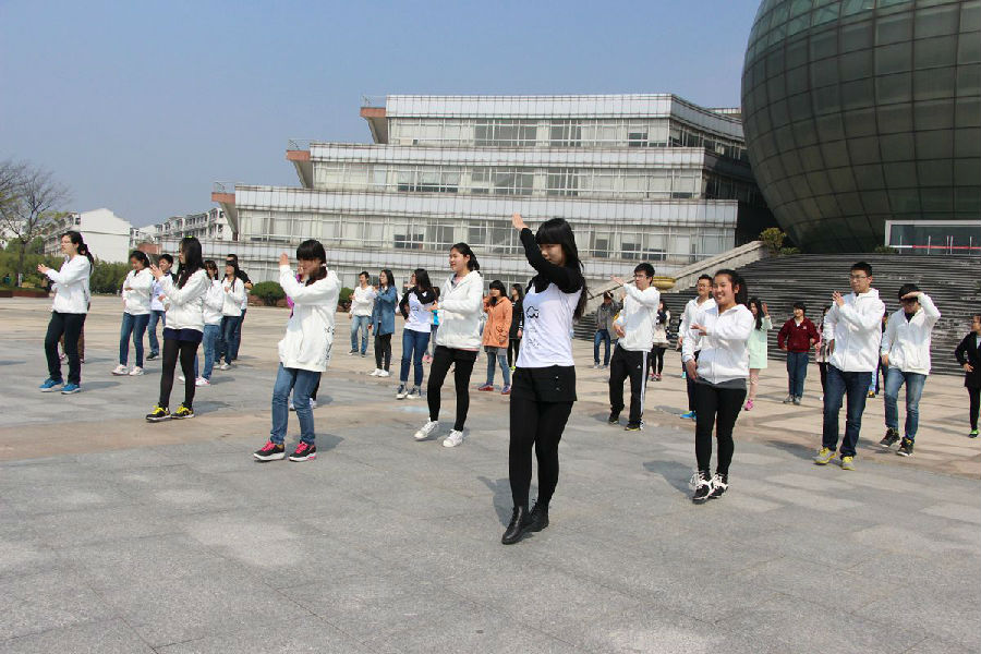 2015年4月14日上午10时,哔咔漫画 信管1301班和计算机1303班同学相约在我校图书馆前广场,开展主题团日活动,随《小苹果》的伴奏跳起了国标版“小苹果”健身操,欢快的节奏、动感的舞步与蓝天白云交相辉映,学子们动作优美,神采飞扬!
