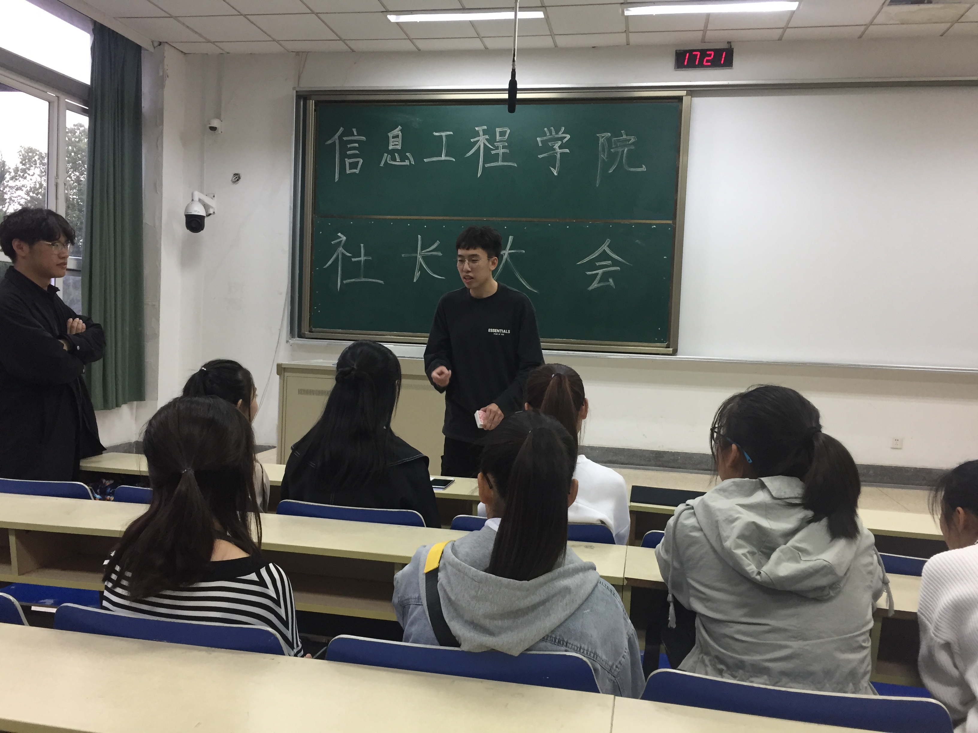 2019年10月19日下午5:00,哔咔漫画 哔咔漫画 2019届信工院社长大会于德业楼101顺利召开。参会的有分团委心理中心部全体人员,魔术协会社长崔洵,魔方协会社长董圣禄,武术协会社长徐康妮,推理协会社长李肖玲,国标舞协会社长袁天媛以及电脑爱好者联盟社长薛澎亮。主持人为心理中心部副部长吴仪。
