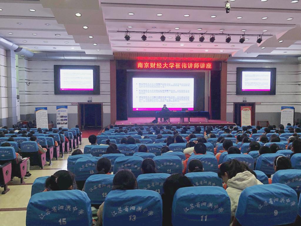 11月30日,学生处心理中心崔伟老师在泗洪中学阶梯教室以“如何与压力共舞——考前心理状态调整”为主题给高中二年级五百多名学生做讲座,从专业角度风趣幽默地传授给学生如何面对高考压力。讲座现场学生们认真聆听、积极思考互动,很多学生表示自己听了讲座后心理变得强大、对高考不再那么排斥和担忧,积极面对高考,讲座达到了预期的效果。