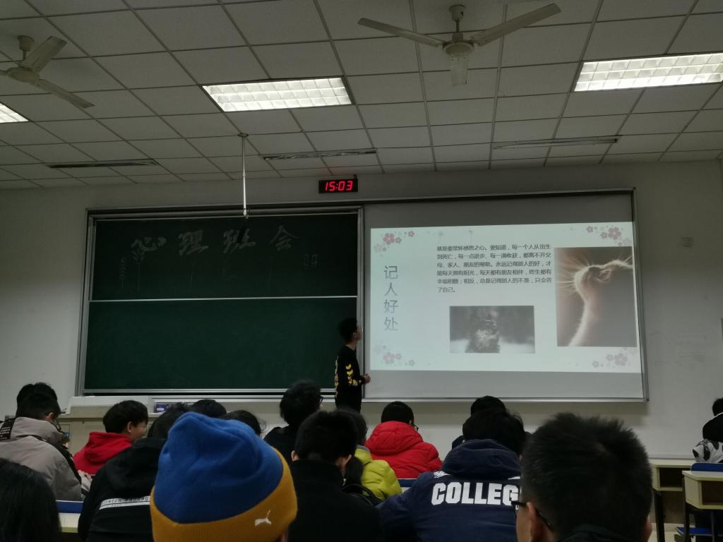 此次心理班会增强了班级的凝聚力、认同感,也相信通过这次班会,大家一定能更好地适应大学生活。