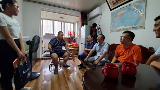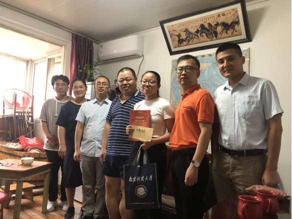 党委副书记袁军、青年教师刘予飞、新生辅导员孙脉,软件工程专业校外专业指导老师张贵舟一行,来到南京市鼓楼区恒盛嘉园小区,看望2020级贫困新生李梦雨同学,并送上新生大礼包和贫困资助金。