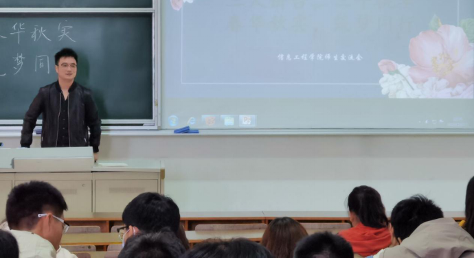 10月30日,软件工程(嵌入式)2001班师生交流会如期结束。不拘小节的蒋玖川老师谨慎而不缺幽默,谦逊而不失自信。简短的介绍后,蒋老师开门见山,一针见血,指出沉溺游戏定然荒废学业。大学生活应丰富多彩,积极参加活动方可全面发展。学习上,正视困难,调整期望,课后杀出回马枪。关于考研,战线勿长。所有科目均有价值,不应顾此失彼、偏向一方;至于科研,论文为先。毛遂自荐,能者优先;关于就业,为时尚早。不应焦虑,当下为重。听了蒋老师的演说,同学们胸中汹涌大展鸿图的壮志豪情。韶华虽易逝,青春当无悔。