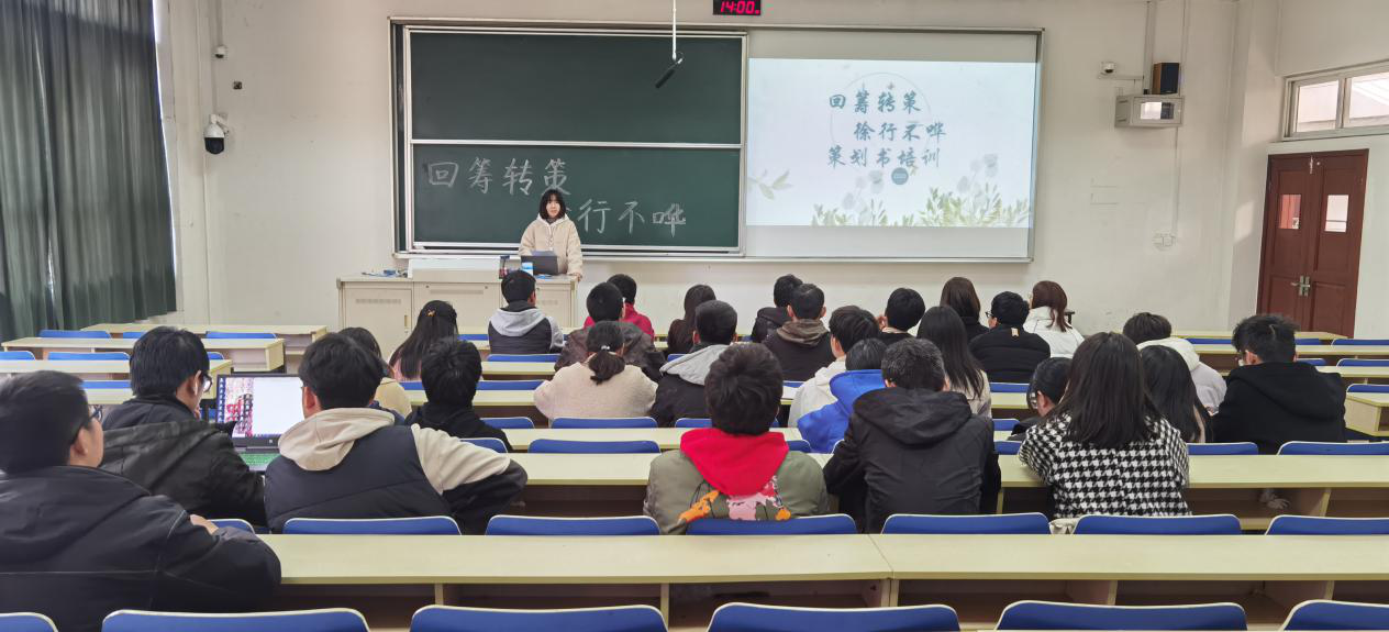 学生会综合事务中心于德业楼111教室开展了“回筹转策,徐行不哗”策划案培训活动。学生会综合事务中心负责人孙敏茜作为主讲人,希望通过策划案培训讲座,让更多的成员学会更加规范的完成活动策划案,从而提高学院学生活动质量。