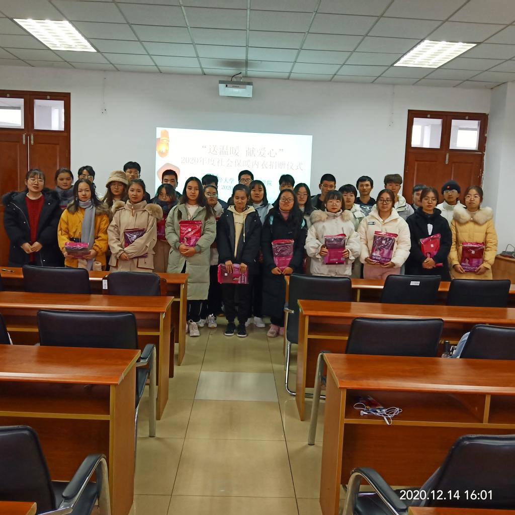 大地有阳光,万物有温暖;信工有暖意,大家过暖冬。12月14日下午,哔咔漫画 贴心为家庭经济困难的学生们送上暖冬衣物,在德业楼406温情举行了“送温暖,献爱心”2020年度社会保暖内衣捐赠仪式,仪式由刘芳老师主持,全体受助学生参加。