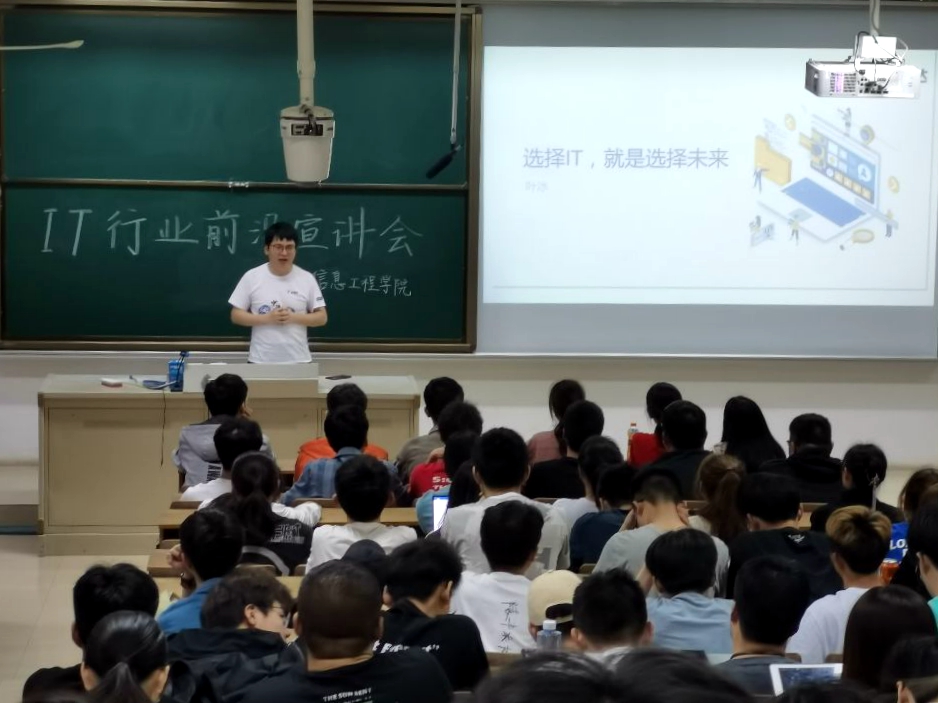 讲座中,叶冰从IT职业方向行业现状、行业趋势、IT职业方向如何进阶三个方面依次做了介绍。接着,他具体从目光聚集、提问自己、目标导向等为同学们做了IT职业规划分析,针对个人简历、面试技巧、岗位选择做了进一步的详细分享与介绍。他强调在IT行业,HR更看重的专业技术与项目经验,希望同学们有机会多参加项目实训,在实战中积累经验并提高自己职业技能。最后,叶冰与同学们进行交流,现场讨论气氛热烈。