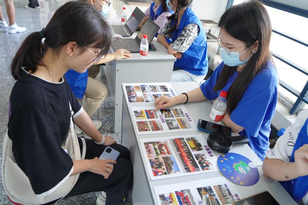 “信”好遇见你。学生会的学长学姐们特意制作的迎新朋友圈和寓意新征程的车票进行拍照,为大一新生留下大学生活的第一个影象。
