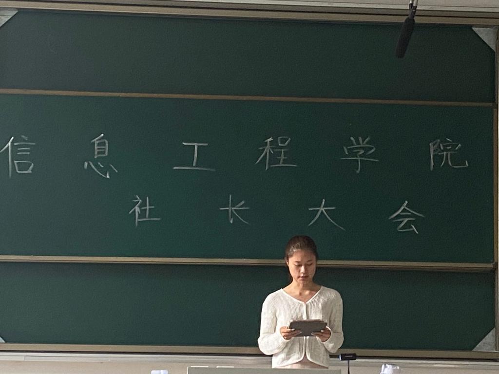2021届信工院社长大会于德业楼101顺利召开。参会的有心理中心部全体成员、魔术协会代表常乐、武术协会社长宫宇柔、推理协会社长虞翔溪,以及国标舞协会社长曹佳妮。主持人为心理中心部部长田晓倩。