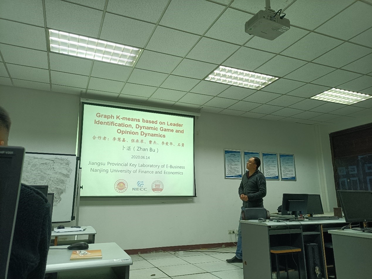 副院长卜湛教授为全体软件工程和部分计算机科学与技术专业研一学生做了“基于领袖识别、动态博弈和观点动态的图K-均值”的专题报告。