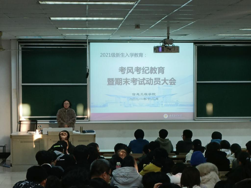 全体2021级新生在仙林校区博观楼202参加了考风考纪教育暨期末考试动员大会,此次动员大会由2021级新生辅导员张媛媛老师主持。