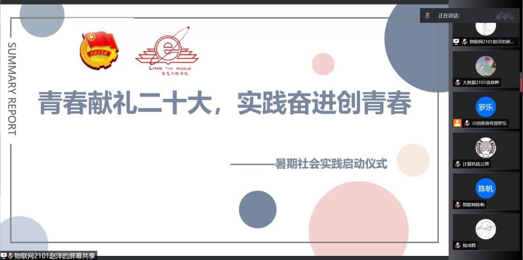 开展了“青春献礼二十大,实践奋进创青春”主题团课暨暑期社会实践专题培训,学院2020级和2021级全体同学分别在线上和线下参加培训。