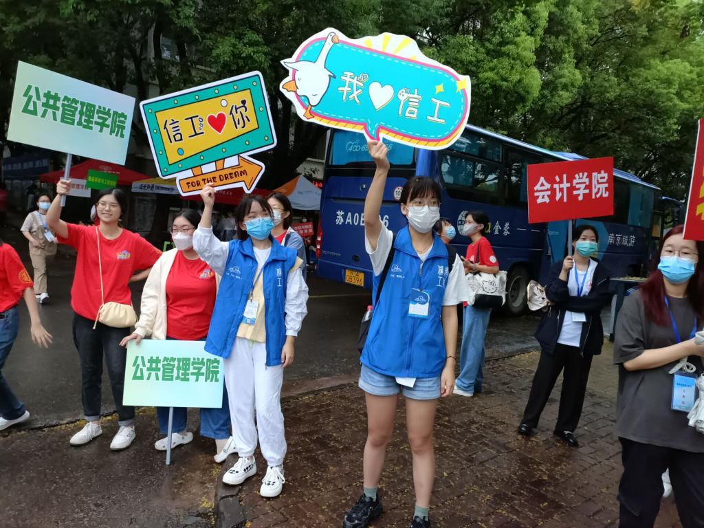在‘信’运遇见你”活动中,由信工院分团委、学生会和校友办组成的迎新志愿者们热情服务,帮助新生搬运行李、积极引导,为新生找到在学校属于自己的“小窝”,协助新生顺利报到,让新生感受到学校的第一抹温暖。