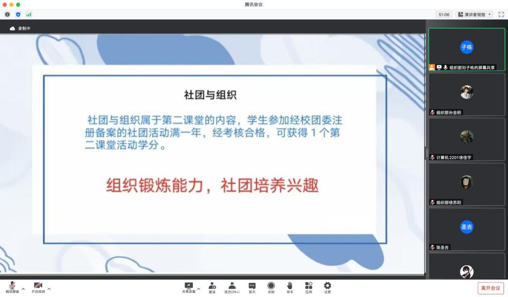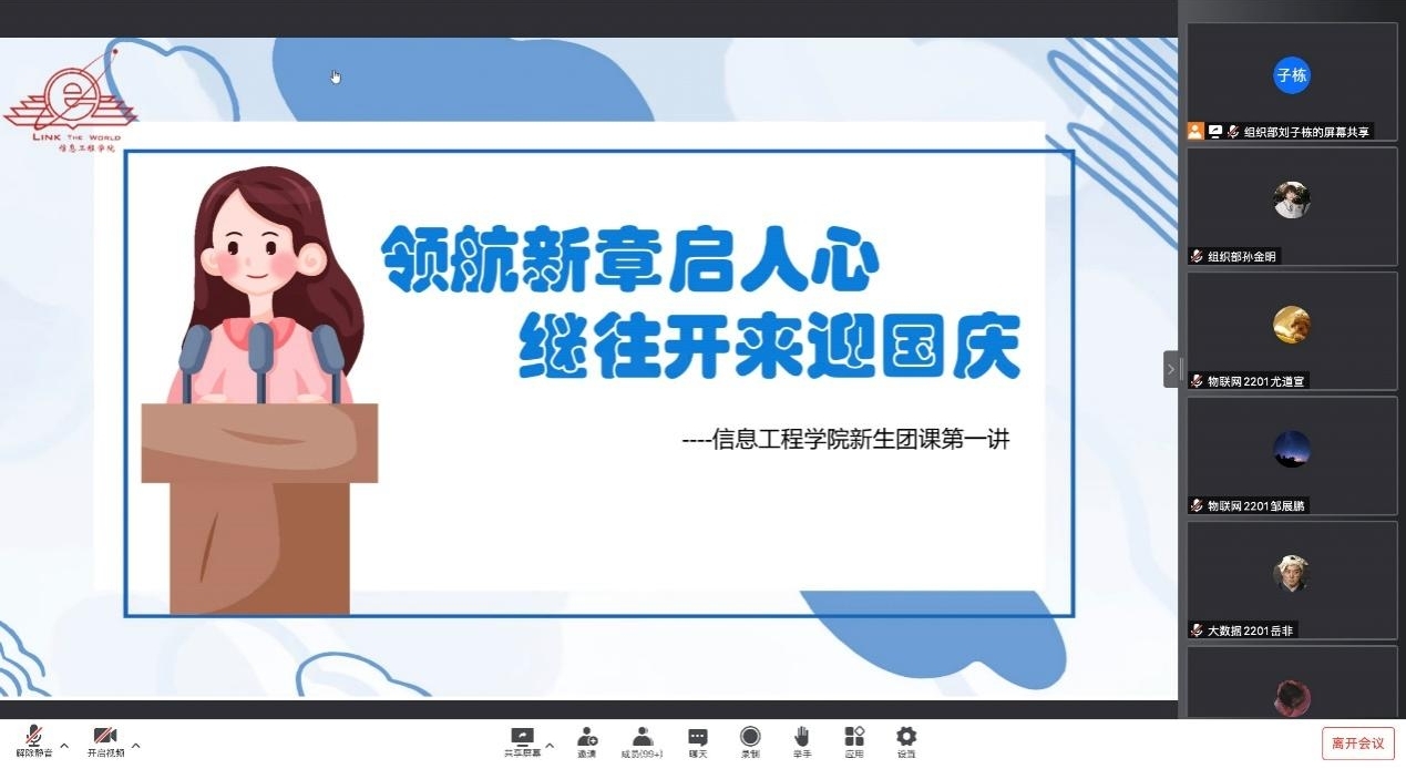 分团委在线举办了“领航新章启人心,继往开来迎国庆”——新生团课第一讲,2022级全体同学参加。