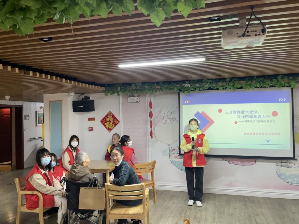 组织志愿者前往南京市鼓楼区爱馨养老疗养院,开展了以“关爱老人,谨防诈骗,学习雷锋暖人心”为主题的志愿服务活动。