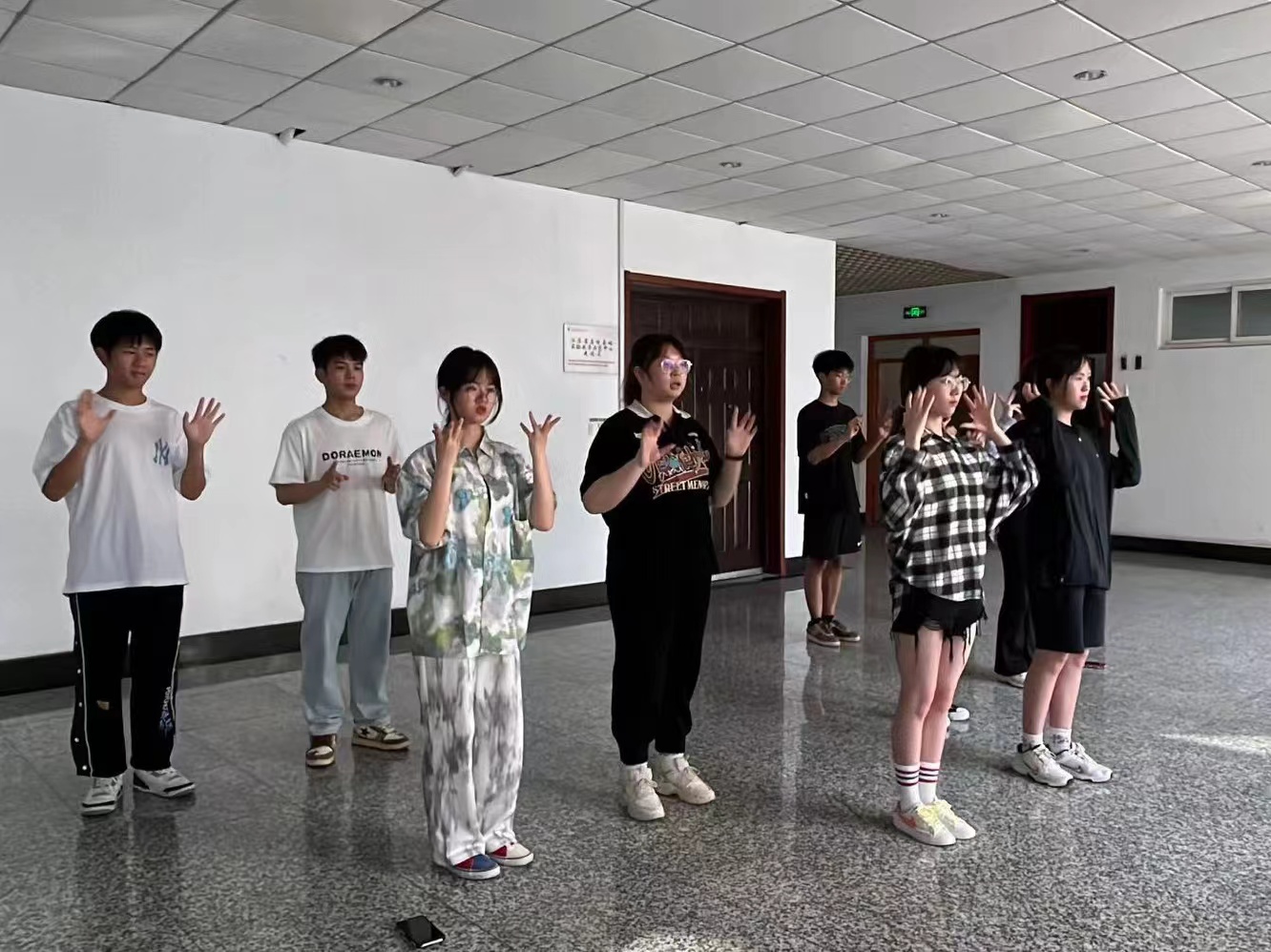 手语操参赛曲目为《仰望星空》,“星空,看似遥远,其实它离我们只不过是踮起脚尖的距离,就像我们的心,我们的梦,只要你努力踮起脚尖,就永远不曾遥远。”在成员选拔结束后,同学们多次进行排练——训练手部动作,学习表情管理以及熟练舞台队形等。期间,同学们按时到场、积极配合,取得良好的训练成果。
