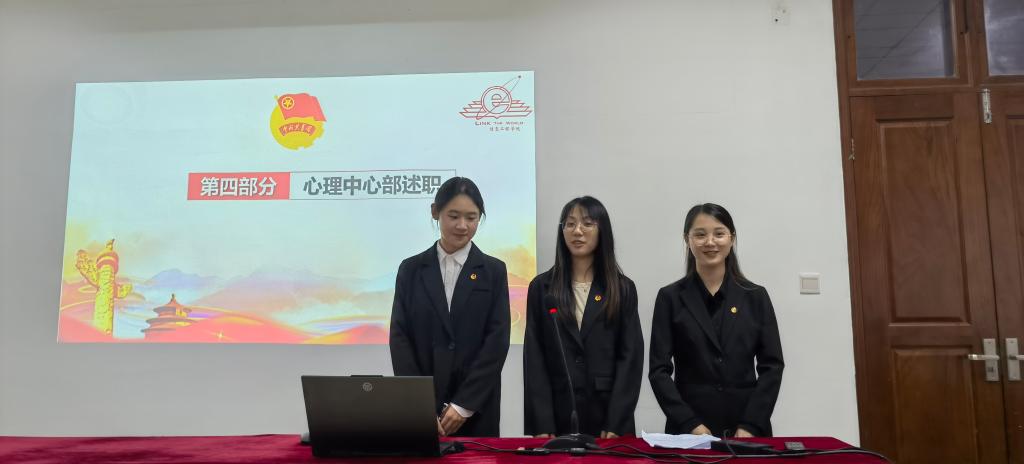 在本次述职中,分团委各部门及校友办代表依次述职,他们回顾一学年的工作内容,反思不足,分享收获,同时表达了对分团委各部门及校友办的美好希冀和真诚祝福。