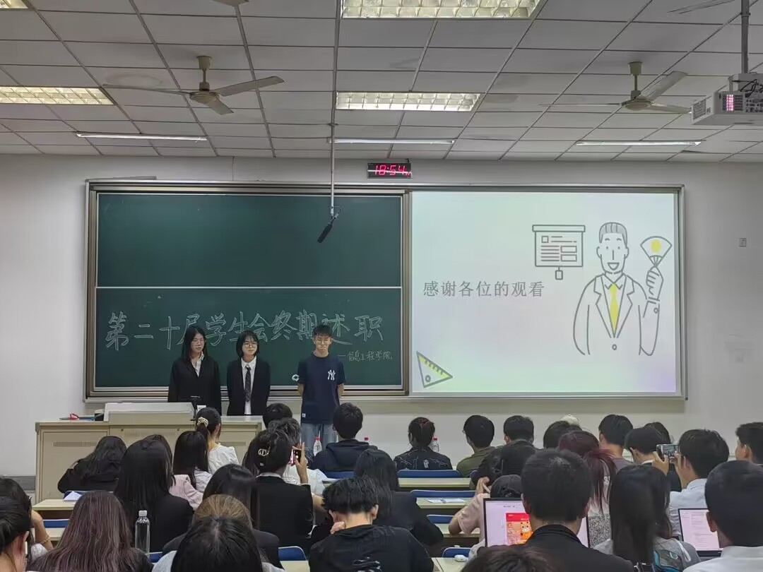 会议伊始,主席团代表朱仪桉进行学生会工作汇报,回顾本学期举办的活动,点明了学生会工作中出现的问题并提出建议。此后,各中心负责人分别就其工作展开述职。
