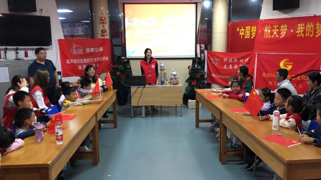 与鼓楼区蓝天园社区合作,在其社区活动室开展了“共筑航天梦,志愿迎国庆”国庆系列志愿服务活动。