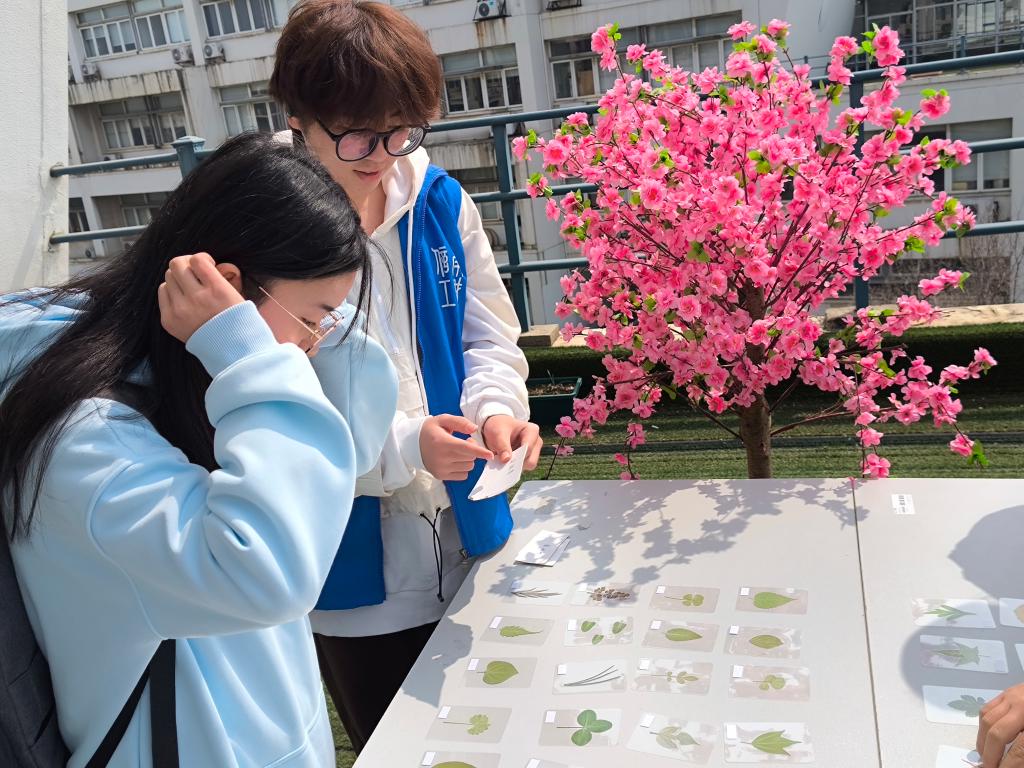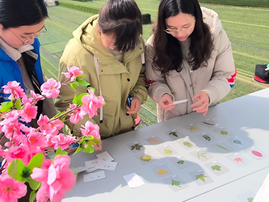 在志愿者讲解活动规则后,同学们开始观察每个标本的外观特征,结合自己的植物知识,将志愿者下发的植物名称卡片放置在标本照片旁边。每匹配成功一对,就能获得相应积分,积分越高,获得奖品的机会就越大。活动最后,志愿者们根据积分排名,为同学们发放小雏菊花种和各种绿植盆栽作为奖品。
