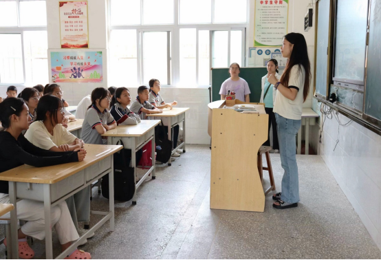 介绍完毕后,破冰行动有序进行。支教老师们与学生们一起进行了 “数字炸弹”、“击鼓传花”等小游戏,在热闹的欢笑声中、轻松愉快的氛围下,彼此间更加熟悉,多了份共赴这场青春之旅的心照不宣的期盼与信心。