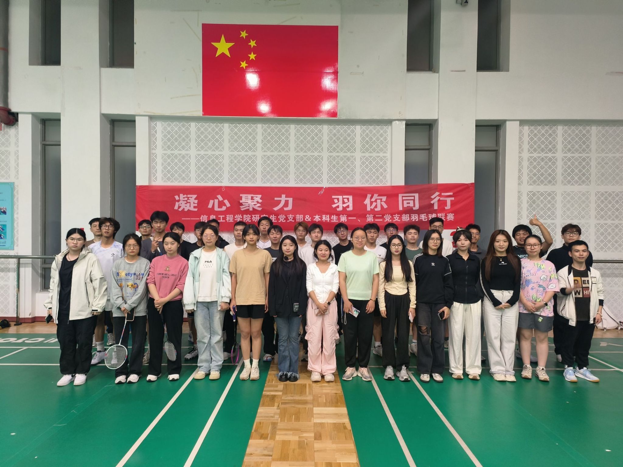 研究生党支部与本科生第一、第二党支部联合举办“凝心聚力·羽你同行”羽毛球比赛。此次比赛不仅展示了大学生积极向上的精神风貌,也为大家提供了一个相互交流、增进感情的平台。通过比赛,大家在激烈的竞技氛围中锻炼了身体,增强了集体意识,提升了团队合作精神。