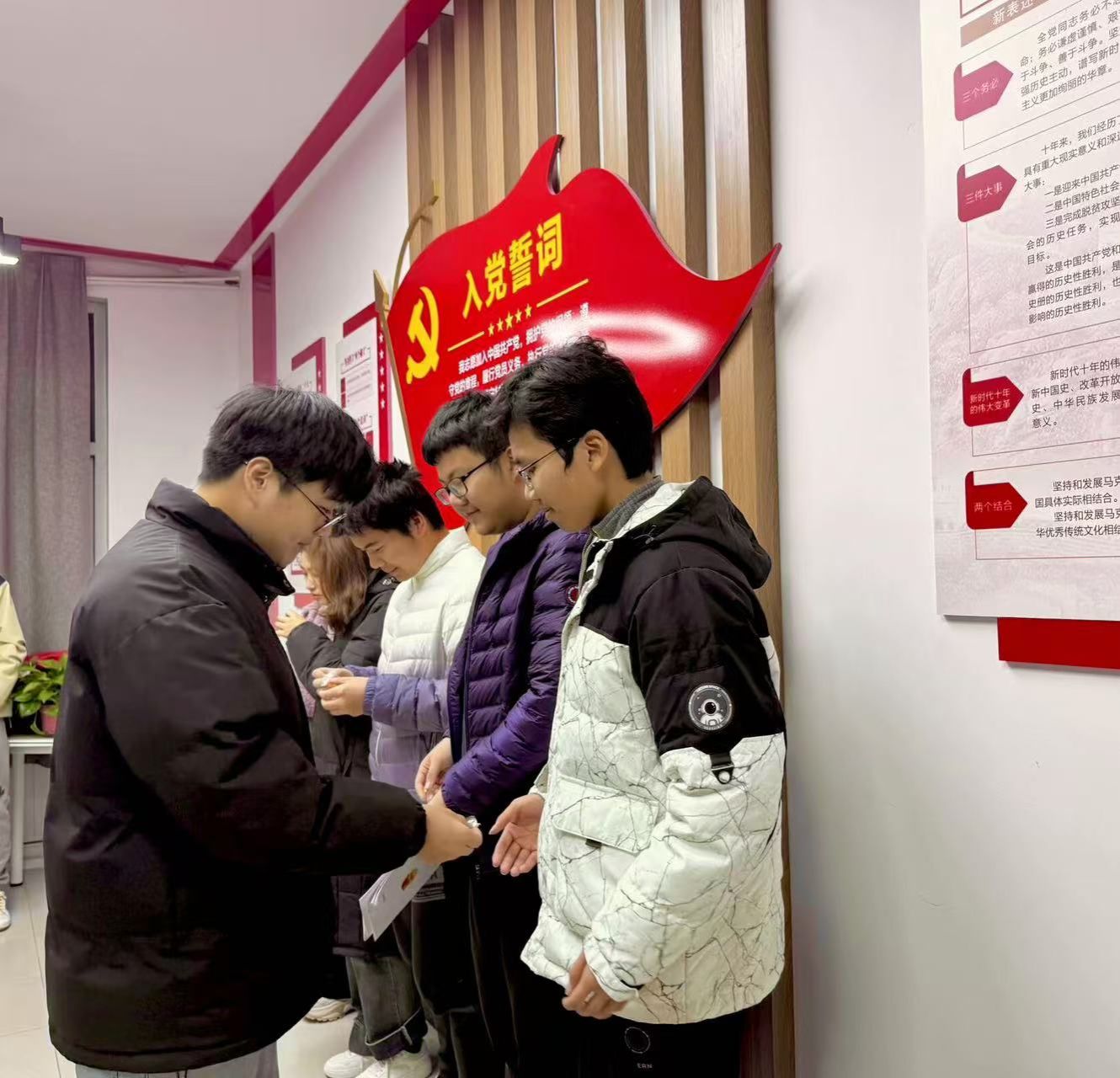 在仪式中,学院分团委副书记袁超逐一为新团员颁发了团徽徽章和团员证。团徽象征着青年的力量与勇气,而团员证则承载着团员的责任与使命。这一庄严时刻,让每一位新团员都深感荣耀与责任并重。