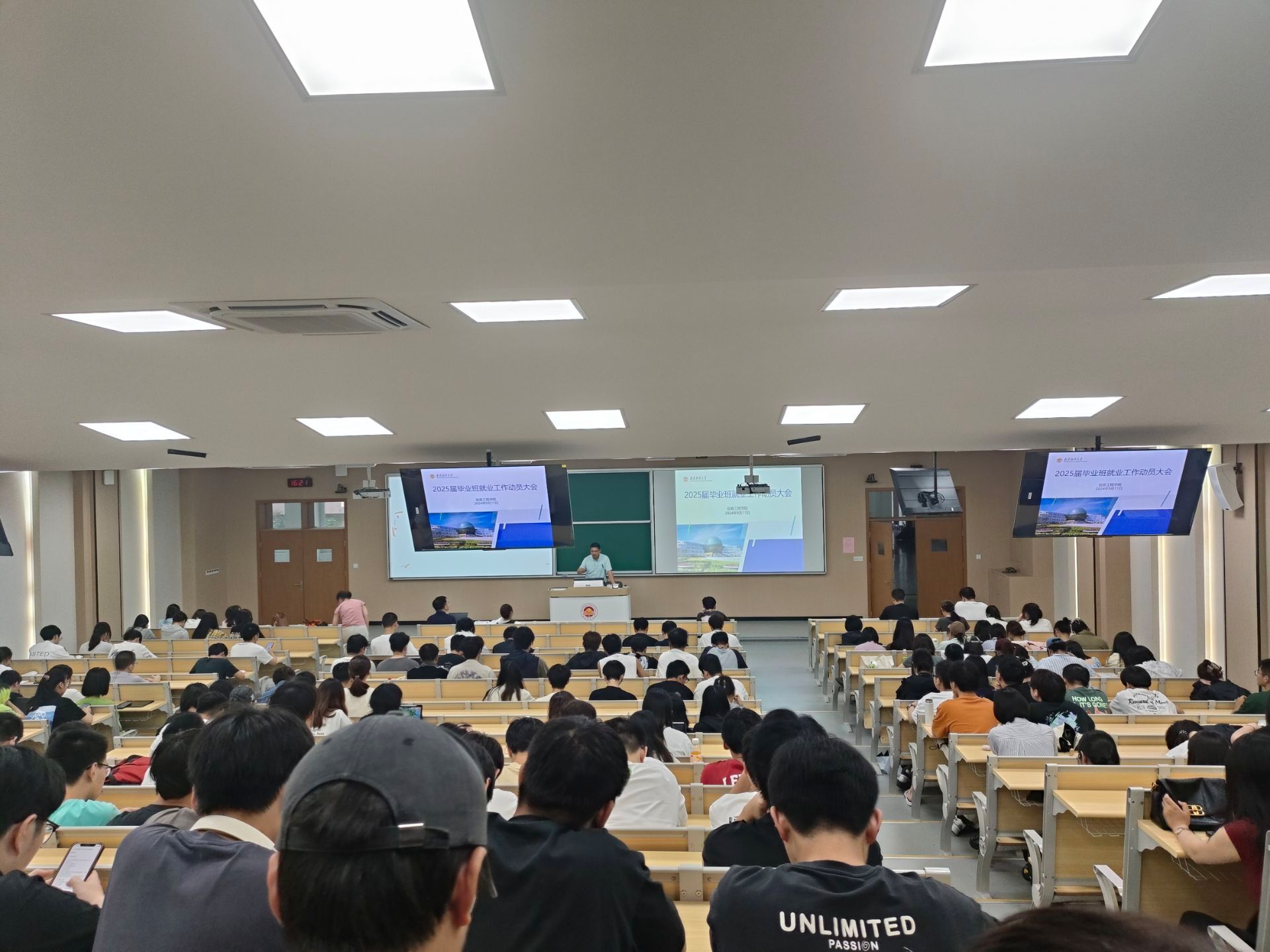 在我校仙林校区博观楼202教室举办2025届毕业生就业工作动员大会。学院党委副书记马健主持会议,学院毕业班辅导员张媛媛、郭秀芳及全体毕业生参加。