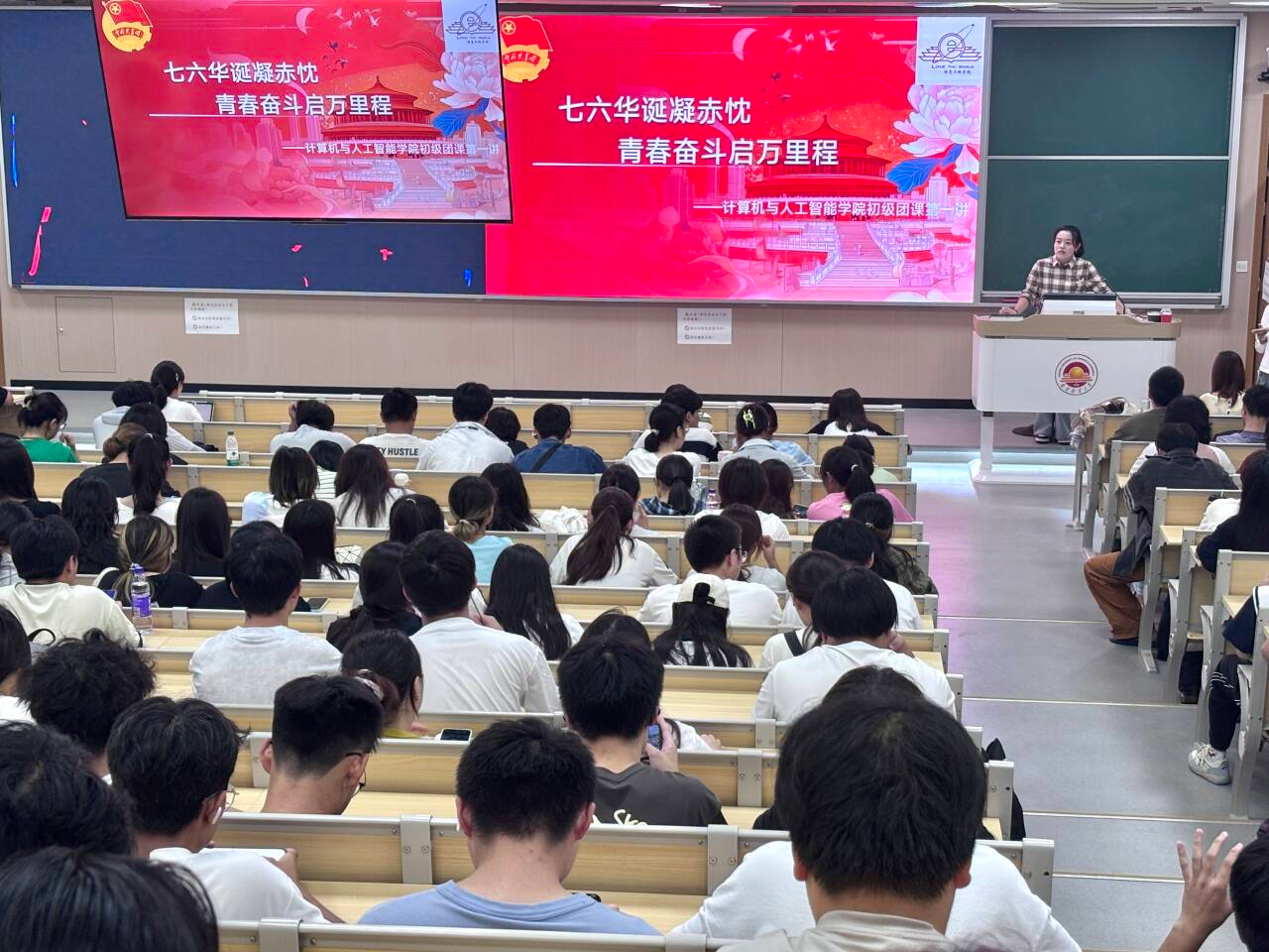 在博观楼201成功举办“七六华诞凝赤忱,青春奋斗启万里程”初级团课第一讲,暨“吾心自有光明月,千古团圆永无缺”梦想公开课第一讲。活动由徐诗逸、范彩钘两位同学主持,学院众多青年学子踊跃参与,现场气氛热烈。