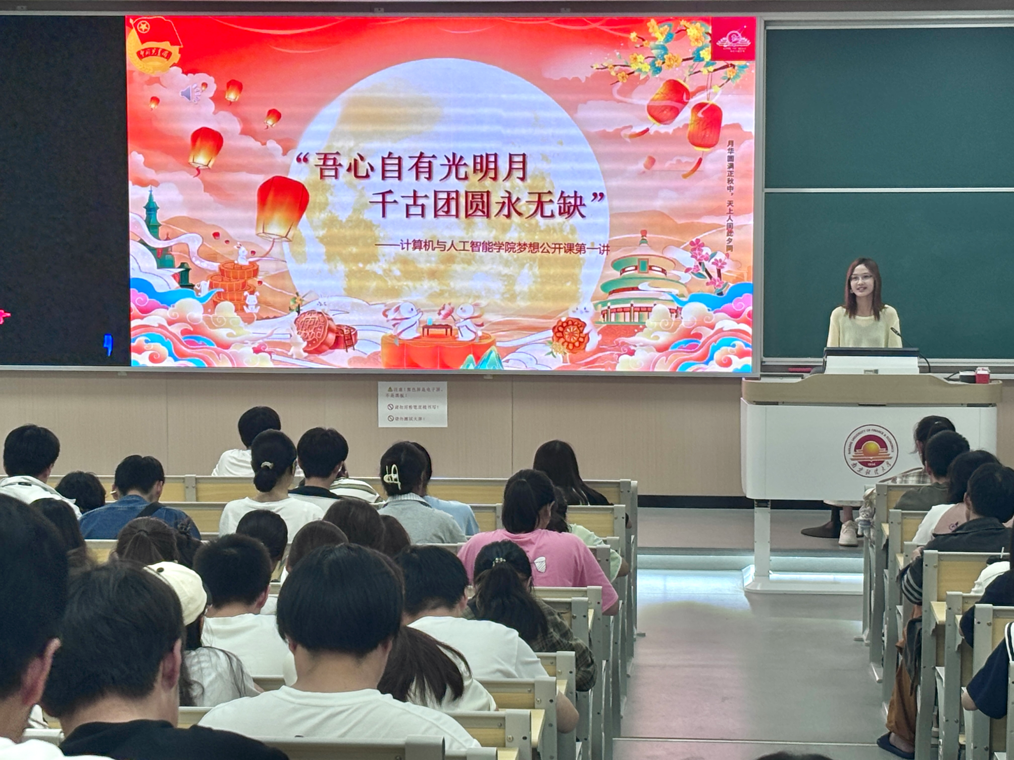 紧接着的中秋主题梦想公开课由范彩钘同学主持。她通过短视频介绍了月饼的传统制作工艺,并巧妙融入中华诗词飞花令,让同学们在领略传统文化魅力的同时,加深了对中秋习俗的理解,激发了浓厚兴趣。