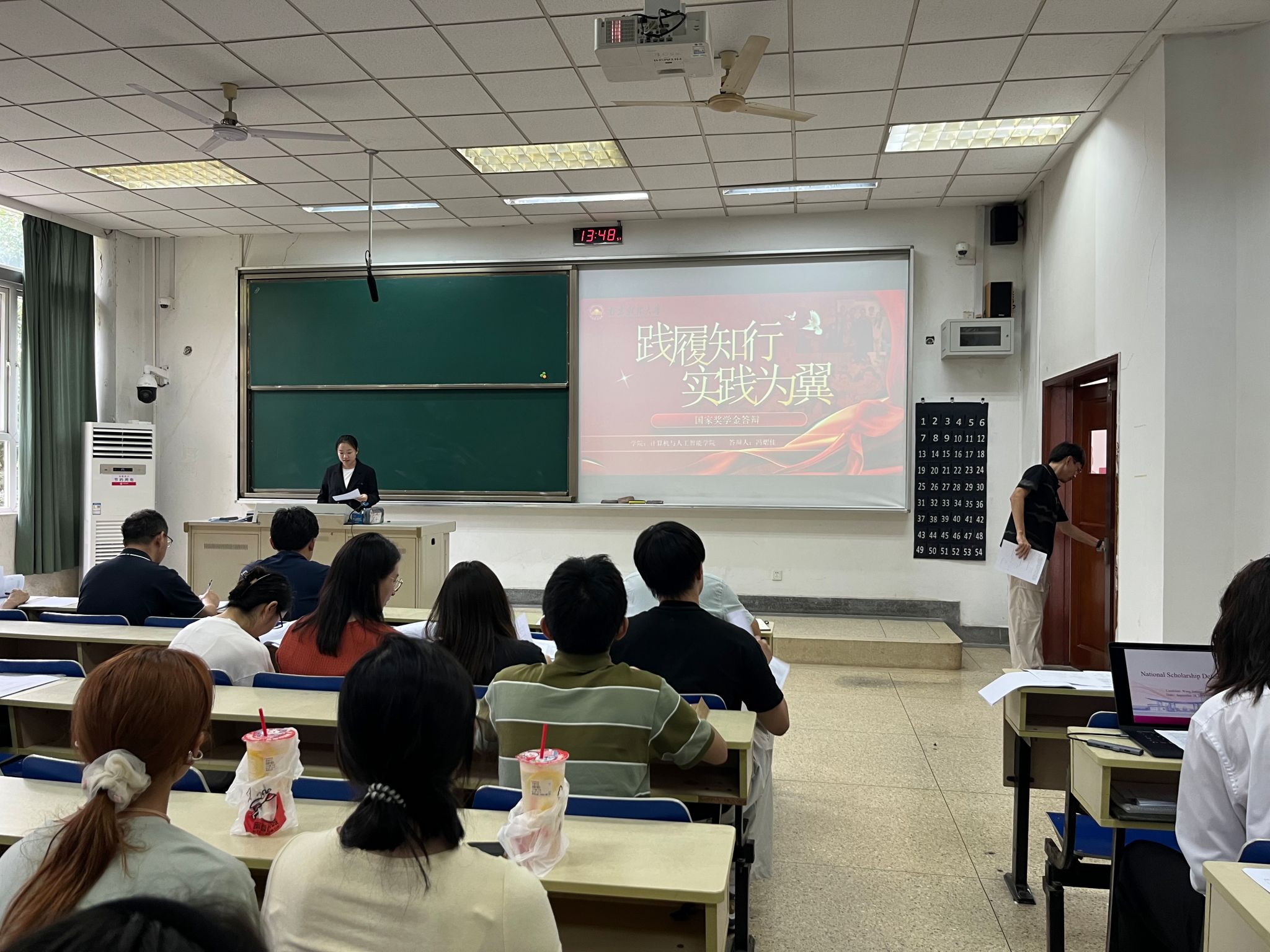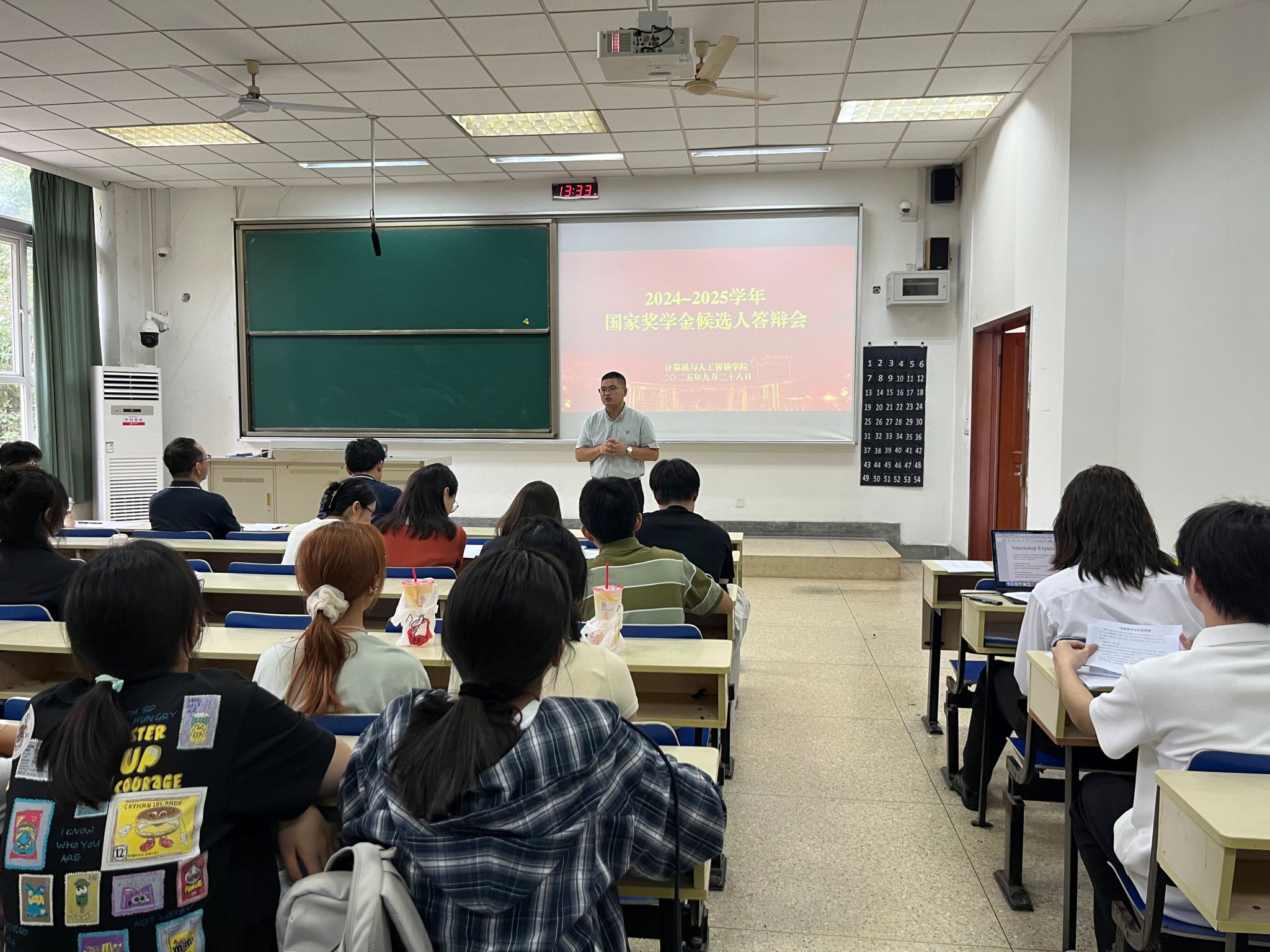在仙林校区德业楼101教室举办2024-2025学年国家奖学金候选人公开答辩会暨新生入学教育。本次答辩会由学院党委副书记马健主持,学院2025-2026学年本科生奖助学金评审小组全体成员、各年级学生骨干代表、2025级新生参加。