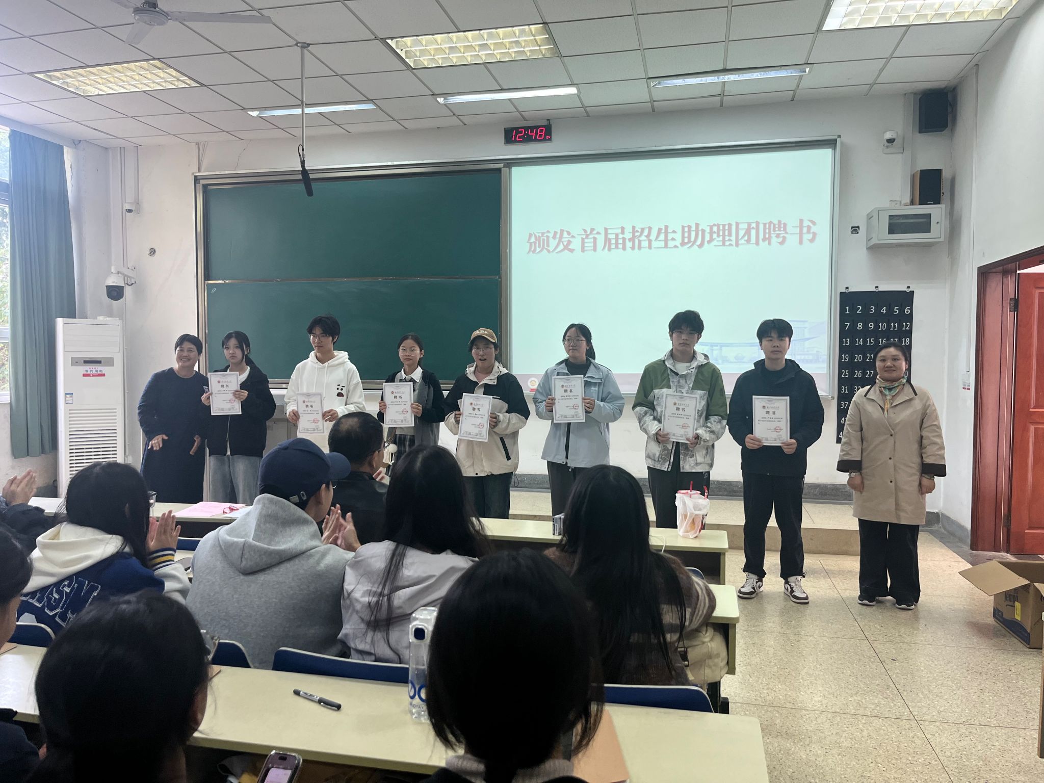 本次见面会的一个特别环节,是为首批“招生助理团”成员颁发聘书。经过前期选拔,一批热情洋溢、责任心强的同学受聘成为助理团成员。两位招生专员老师亲自为他们颁发了聘书。这本鲜红的聘书不仅是一份荣誉,更是一份沉甸甸的责任。新晋助理团成员纷纷表示,将积极扮演好连接学院与高中母校的桥梁角色,以自己的亲身经历和感受,向未来的学弟学妹们展现学院的魅力与风采。