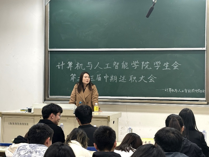 汇报结束后,各中心负责人依次上台进行述职答辩,他们回顾了本学期主办的活动,讲述了所取得的成果,同时仔细分析了其中存在的问题,对下学期的工作开展表现出殷切的期望。