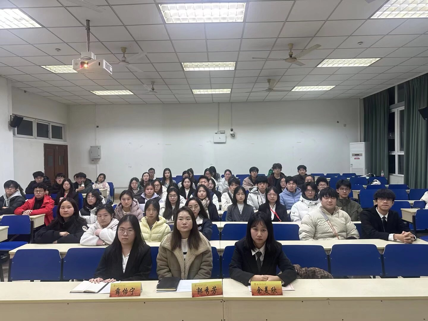会议伊始,主持人向到场的全体老师与同学们致以诚挚问候,并隆重介绍了莅临本次会议的嘉宾——院团委书记郭秀芳老师、分团委副书记余美欣、薛怡宁。在热烈的掌声中,大会各项议程有序推进。