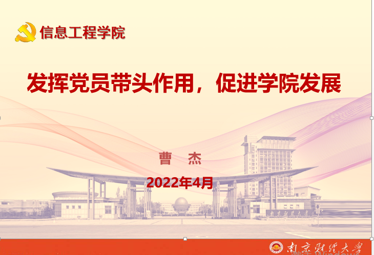院长、本科生第二党支部政治辅导员曹杰教授通过网络平台,以“发挥党员带头作用,促进学院发展”为题,给2022年上半年“党的发展对象”培训班的学员上了一堂专题党课