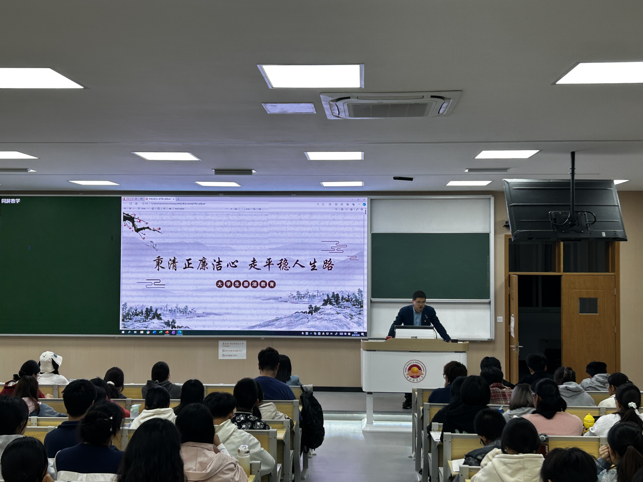 专题思政课上,马健副书记以“秉清正廉洁心,走平稳人生路”为主题,从学清廉、思清廉、悟清廉、践清廉四个方面详细讲解了廉洁的含义,介绍了新时期高校廉洁文化建设,强调了大学生要擦亮青春廉洁底色、迈稳人生第一步。此外,他还围绕大学生常见违纪违法典型案例以及大学生如何践行廉洁思想,与同学们进行了交流讨论。