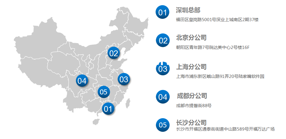 总部设于深圳,目前在北京、上海、成都、长沙设有分公司及研发中心,项目组遍布全国。