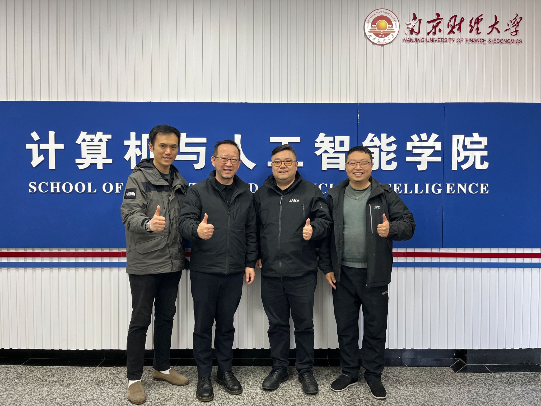 张阳军书记对杨卓副总裁一行到访表示热烈欢迎,详细介绍了学院在学科建设、人才培养、科学研究以及国家级实验室平台等方面的优势。张书记表示,学院可以结合我校粮食特色,与节卡机器人公司携手在电子商务领域物流技术信息化、智慧粮仓信息化等关键技术领域展开合作,深化协同创新。毛波副院长详细阐述了学院科研优势,并表示双方可以通过共享实验平台、联合申报国家级科研项目、共同发表高水平论文等形式,共同培育具有国际竞争力的创新成果。