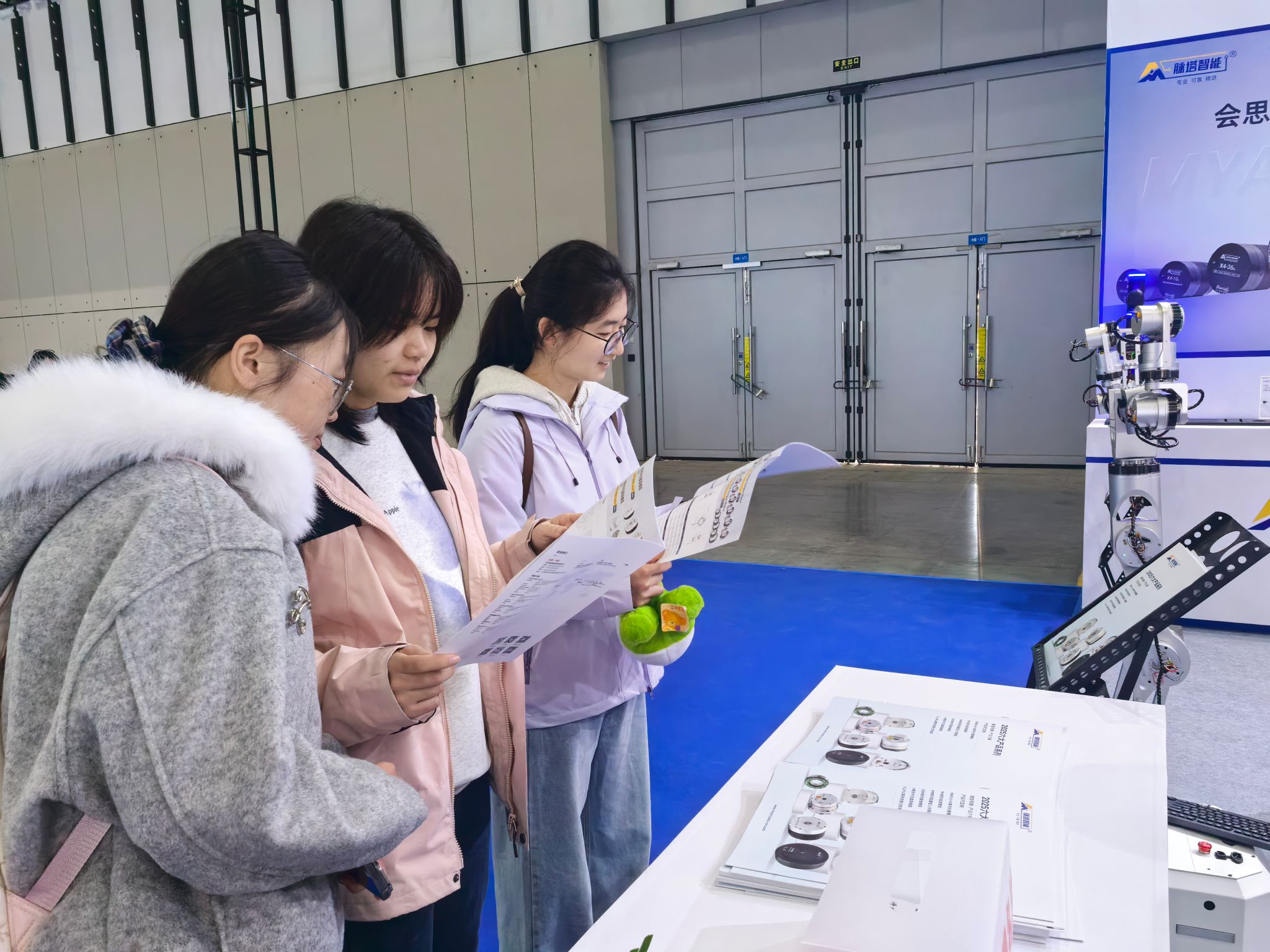 在展馆内,同学们带着浓厚的学习热情,依次参观了各个展区。从精准高效的工业机械臂协同作业演示,到基于大数据的智能生产调度系统;从人机交互的智能终端设备,到覆盖多行业的数字化转型解决方案,一件件尖端产品、一项项创新技术,让大家直观感受到智能制造为产业升级、社会发展带来的深刻变革。在重点企业展区,同学们认真聆听工作人员的讲解,详细询问技术原理、应用场景及行业发展趋势,并围绕专业知识与实际应用展开热烈讨论。